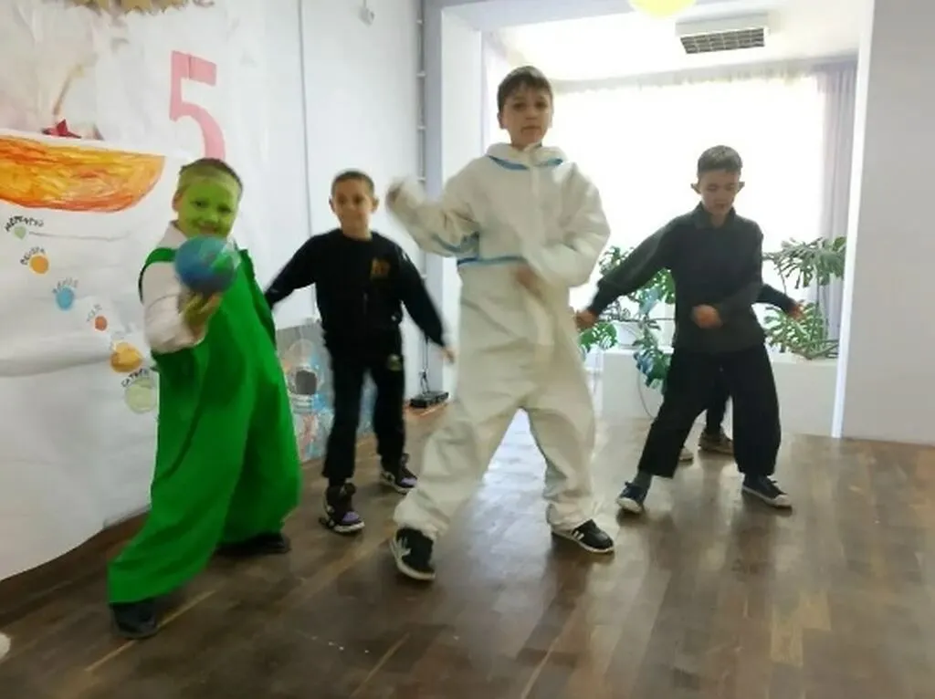 Меркурий — Нужно было создать экспонат планеты, а чтобы зарядить энергией космический корабль, ребята танцевали космические весёлые танцы с инопланетянином.